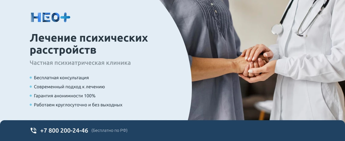 Записаться на прием к врачу-психиатру можно на официальном сайте клиники «НеоПлюс» в Климовске или по телефону ☎️ +7 (800) 200-24-46. Звоните нам, не запускайте проблему. Мы знаем, как вернуть здоровье и покой в Вашу семью!